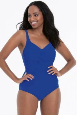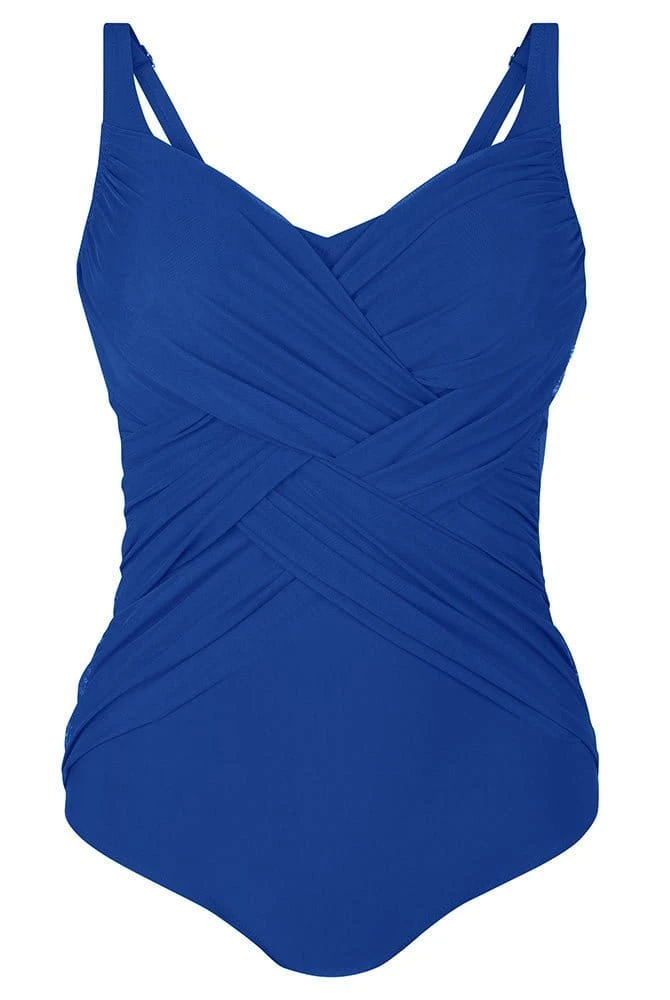 Der leuchtend blaue Badeanzug Aileen aus der Anita Serie Paisley Blossom sorgt mit seinem herrlichen Blau und der raffinierten diagonalen Stoffgestaltung vorn für einen imposanten Blickfang. Das hochwertige Shape-Material schmiegt sich weich an Ihre Haut und bewirkt einen vorteilhaften slimming-Effekt. Die weichen Cups sind mit Bügel gearbeitet und vermitteln perfekte Formgebung und Sicherheit. Die diagonalen Raffungen im vorderen Bereich bewirken eine optische Verschlankung der Figur. Die komfortablen Träger sind verstellbar, der Beinausschnitt ist moderat.