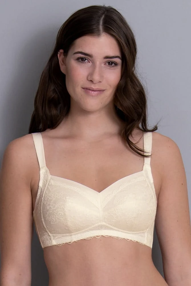 Romantischer Spitzenlook mit Komfort-Extras: Bei Prothesen-BH Dalia von Anita Care legt sich filigrane Spitze um ein atmungsaktives Flies im Cup, das die Brustprothese perfekt kaschiert. Das dreigeteilte genähte Cup passt sich perfekt Ihrer femininen Silhouette an und schmiegt sich sanft an die Haut. Die verstürzte Blende im Dekolleté setzt einen spannenden Kontrast und verkleinert das Dekolleté optisch. Beidseits diskrete Prothesentaschen bestehen aus weichem Baumwoll-Material und liegen angenehm auf der Haut. Weiche nahtlose Komfortträger sind unterfüttert und entlasten dadurch Schultern und Nackenbereich. Der weiche Rückenverschluss fügt sich in das bequeme Ensemble ein und unterstützt den komfortablen Charakter des Prothesen BHs Dalia.